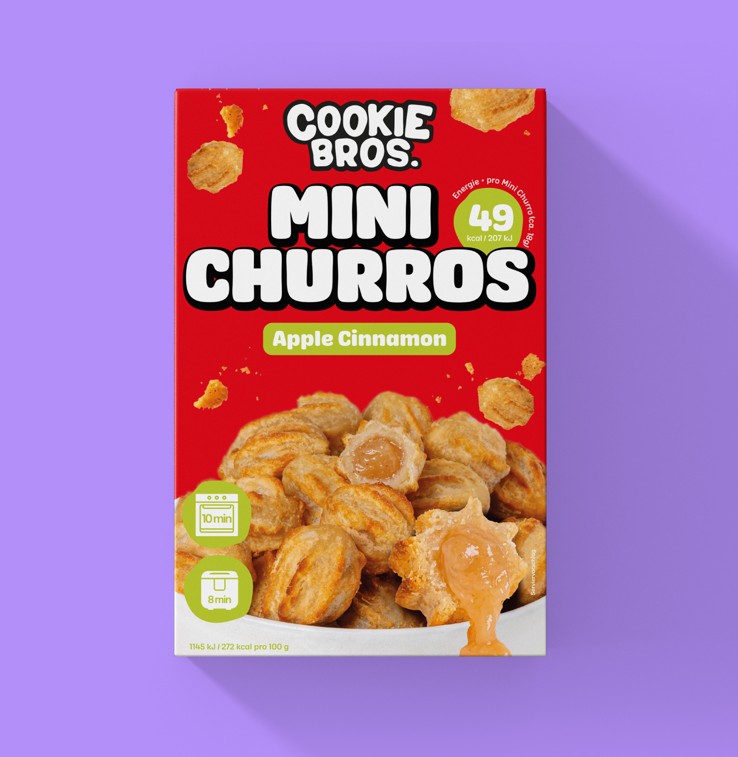 Knusprig, heiß & in Minuten fertig! Entdecke unsere unwiderstehlich leckeren Cookie Bros. Churros – goldbraun, knusprig und herrlich süß! Perfekt für den schnellen Genuss zuhause: Einfach im Toaster oder Airfryer zubereiten – ganz ohne Fett und in nur wenigen Minuten. Ob pur, mit Zimt & Zucker oder deinem Lieblings-Dip – unsere Churros sind ein echter Snack-Traum. Schnell, einfach und sooo gut!